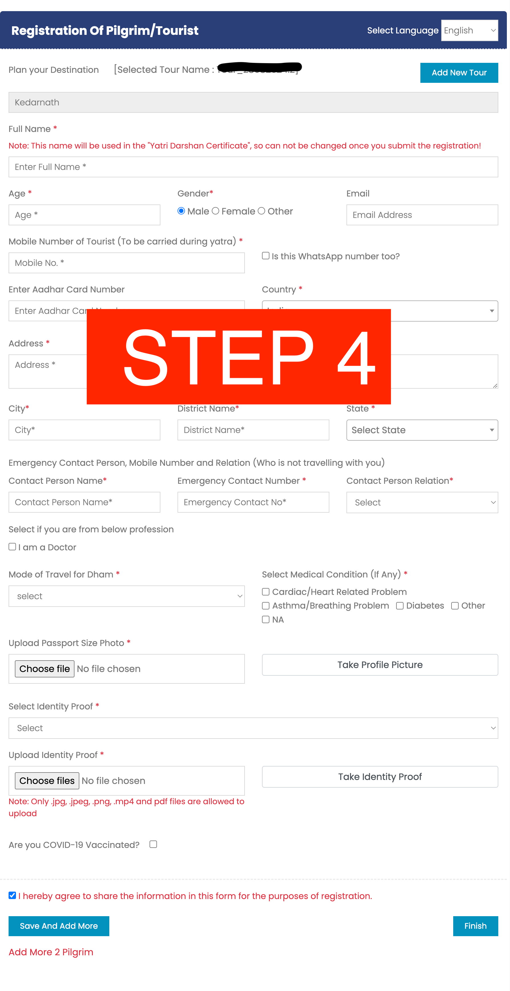 Follow these steps to complete your free online registration for the Kedarnath Yatra: